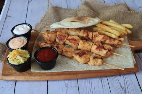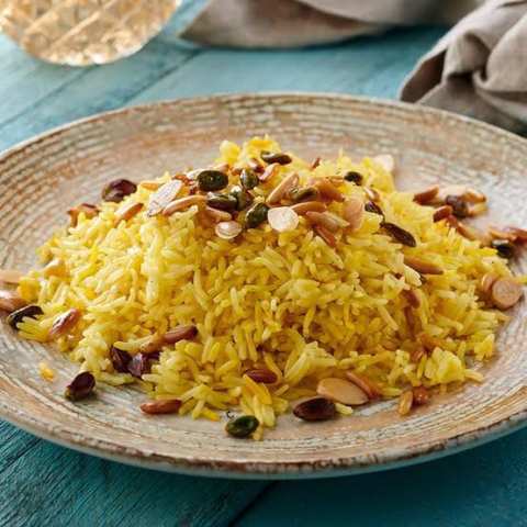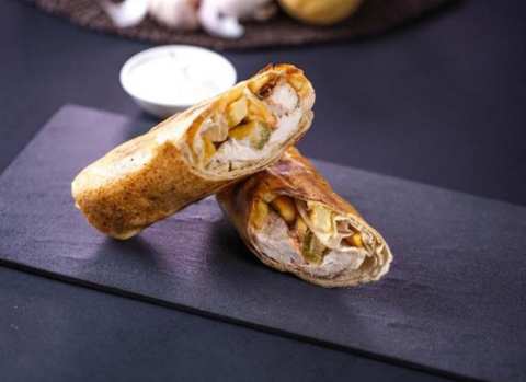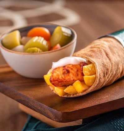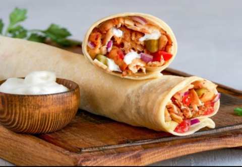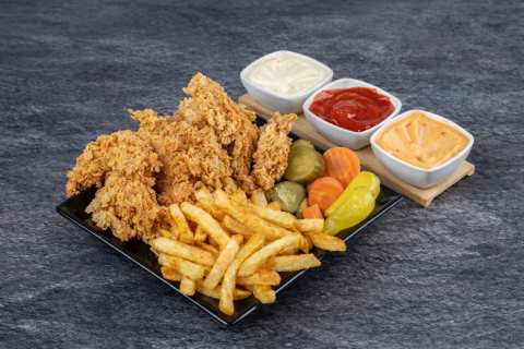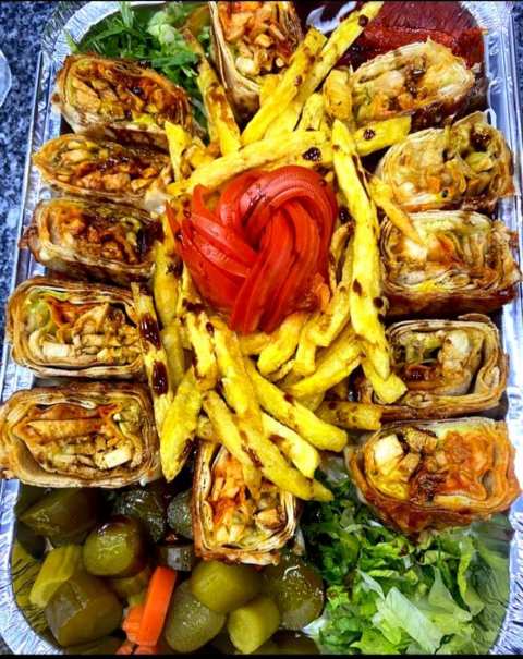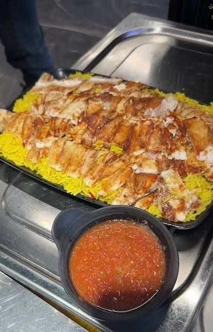 مع بطاطا ورز وتوم وكبيس وخبزة حرة