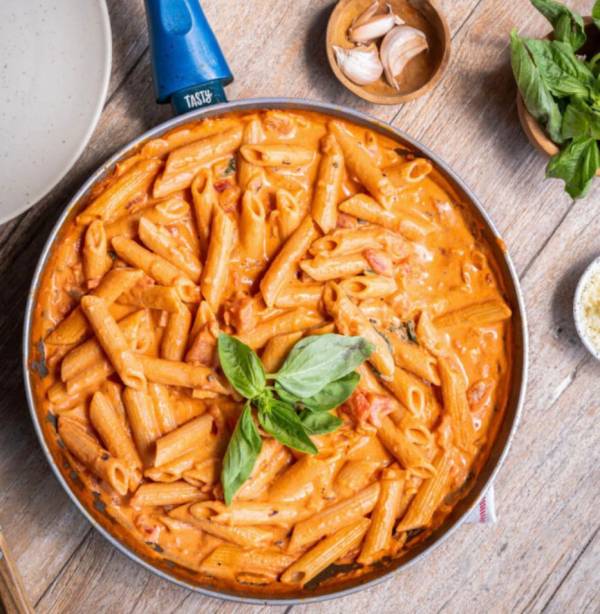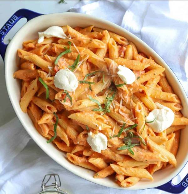 صلصة الورد. جبنة مشكلة. مغطاة بجبنة البارميزان