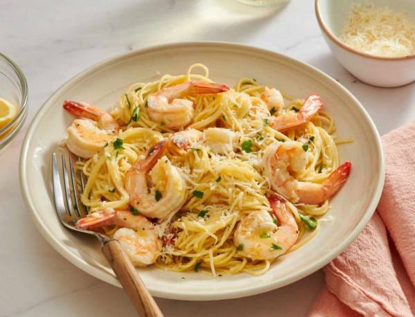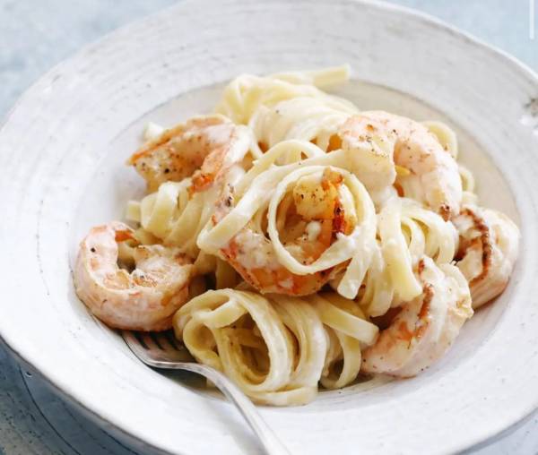 فيتوتشيني، فطر، صلصة كريمة، مغطاة بجبنة البارميزان والقريدس
