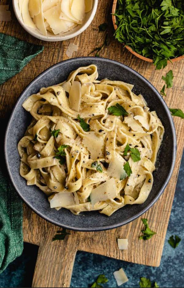 بيني، صلصة الكمأة البيضاء الكريمية، مغطاة بجبنة البارميزان