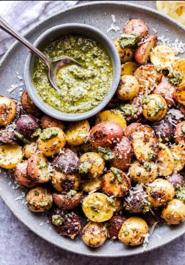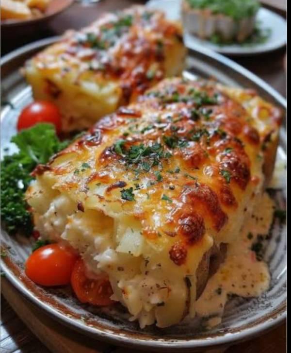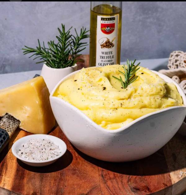 بطاطس مغطاة بصلصة كريمة الكمأة وجبنة البارميزان