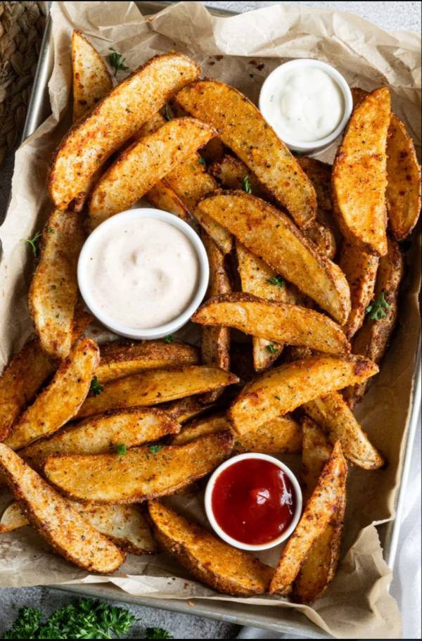 بطاطس ودجز تقدم مع صلصة الكوكتيل