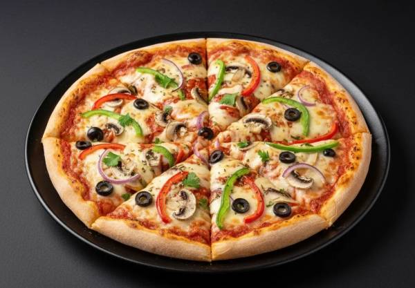 فلفل رومي، مشروم، جبنة موزاريلا، صلصة سان مارزانو.