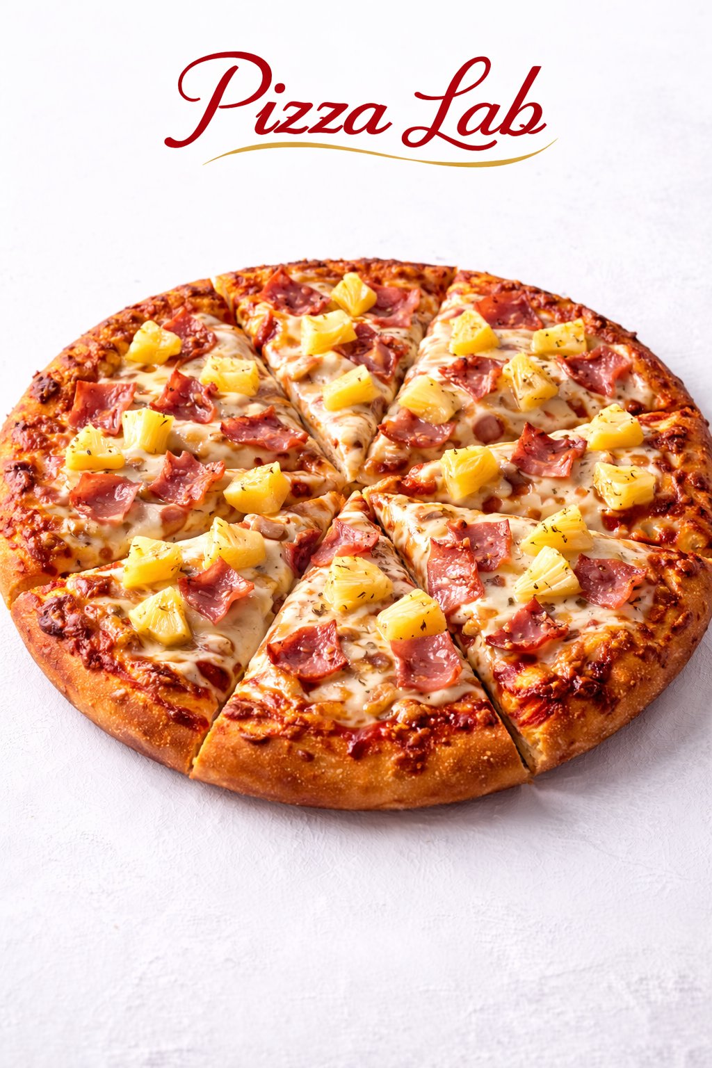أناناس، حبش مدخن، جبنة موزاريلا، طماطم حلوة.