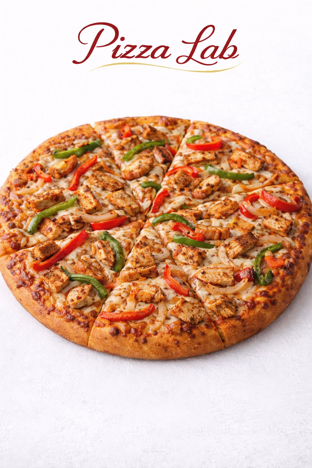 دجاج مشوي متبل، كريمة الثوم، جبنة موزاريلا.